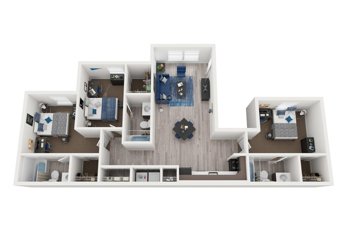 Floor plan of 3 bedroom 3 bathroom apartment
